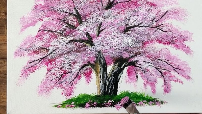 基礎編 アクリル絵の具を使用した 桜 の描き方 初心者が簡単に絵を描く方法 81 Youtube